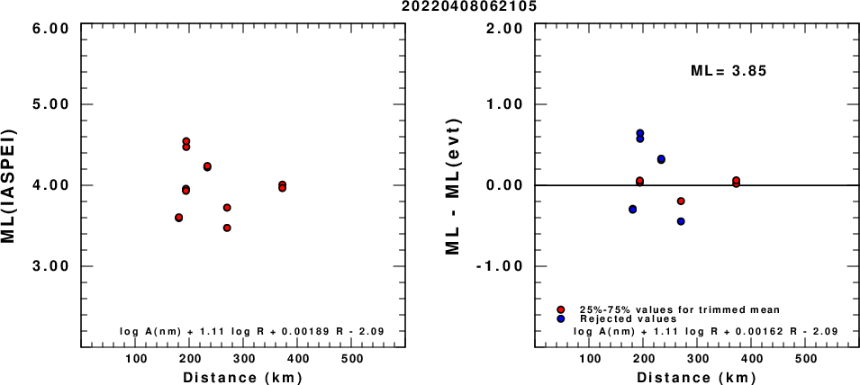 ML magnitude computed from horizontal components